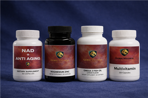 The Healthy Aging Pack is a well-balanced 4-in-1 daily supplement system designed to support energy, immunity, heart health, and overall vitality as you age. It features NAD+ Anti-Aging to promote cellular repair, boost natural energy levels, and support longevity; Magnesium Bisglycinate to support muscle relaxation, improve sleep quality, reduce stress, and promote overall nerve and muscle function; Omega-3 Fish Oil to support heart health, brain function, and reduce inflammation; and a Multivitamin to fill nutritional gaps and support overall health, immunity, and wellness. Together, these key formulas work synergistically to help you stay energized, resilient, and balanced every day.