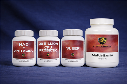 The Daily Wellness & Recovery Pack is a complete 4-in-1 supplement system designed to support energy, digestion, sleep, and overall health in one simple daily routine. It features NAD+ Anti-Aging to boost cellular energy, support recovery, and promote long-term vitality; 20 Billion CFU Probiotics to improve gut health, enhance nutrient absorption, and strengthen immune function; a Sleep Formula to help you achieve deeper, more restorative rest for better recovery and daily performance; and a Multivitamin to fill essential nutrient gaps and support overall wellness. Together, these key ingredients work synergistically to help you feel energized, balanced, and fully supported every day.